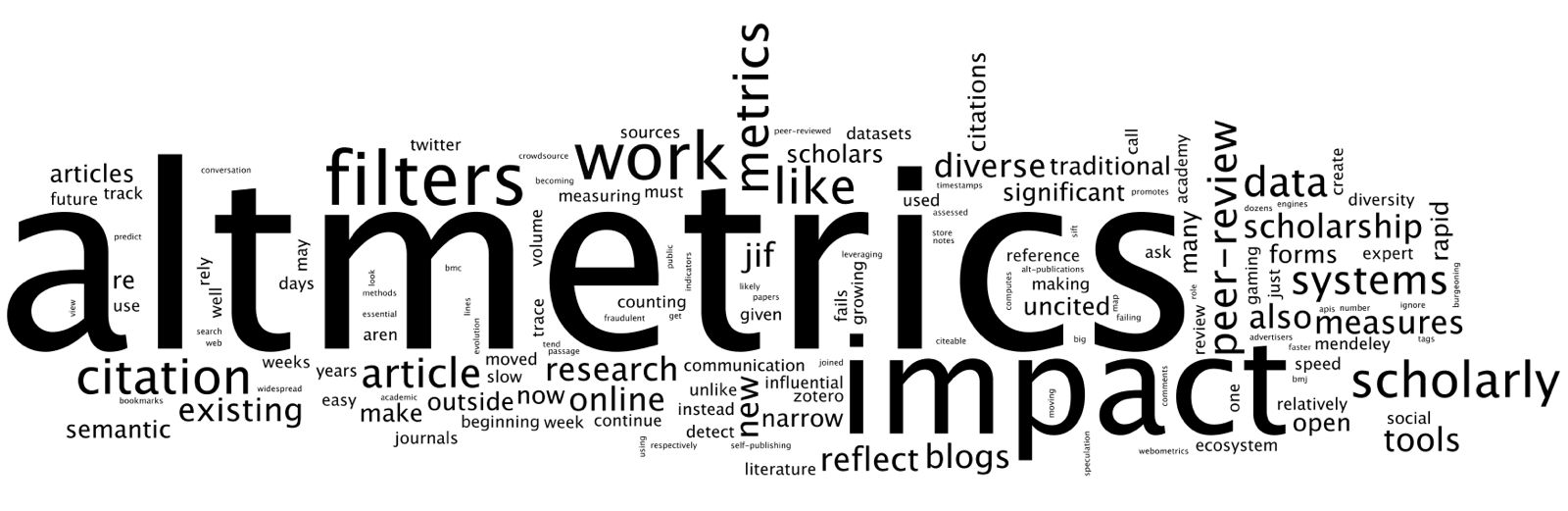 “Altmetrics is the creation and study of new metrics based on the Social Web for analyzing, and informing scholarship.”